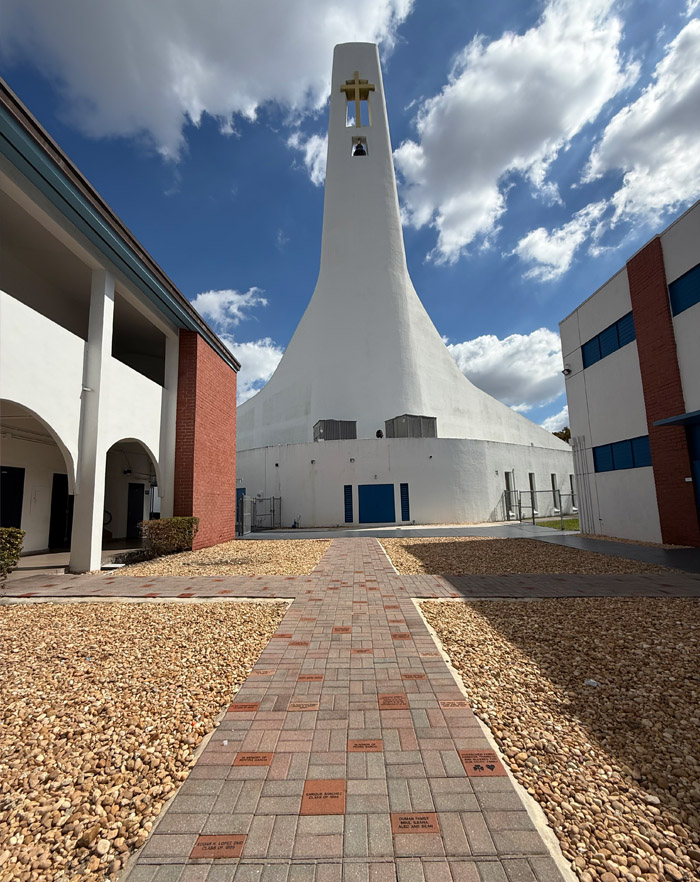 The Celtic Legacy Plaza is located in the courtyard between the two main buildings of our school, overlooking our beautiful church tower. This special space is a meaningful and growing part of our campus—one that celebrates the spirit, history, and community of Immaculate Conception.